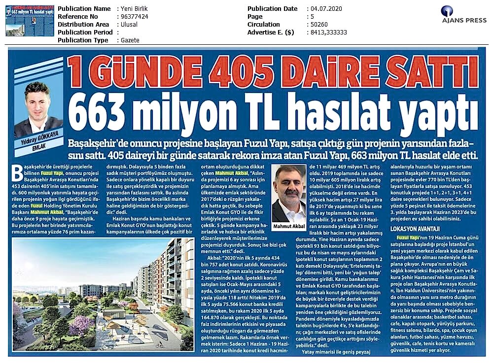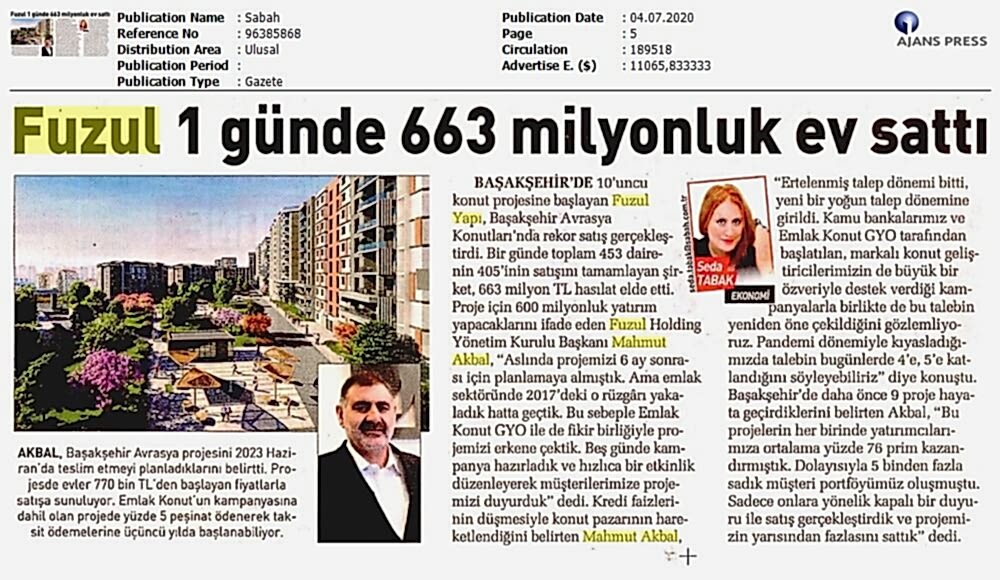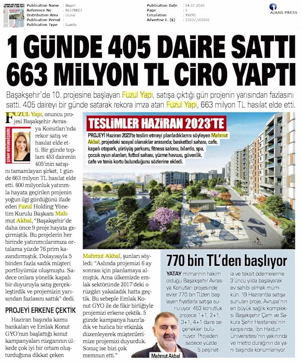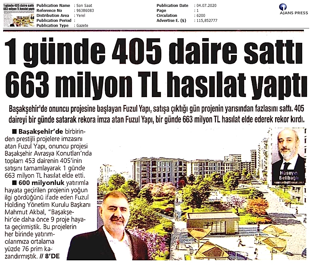 1 Günde 405 Daire Sattı 663 Milyon TL Ciro Yaptı