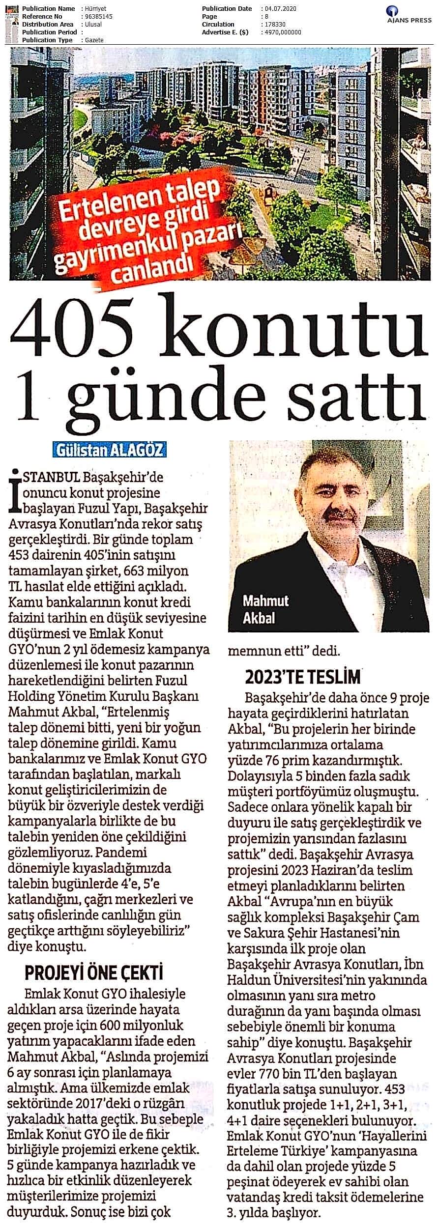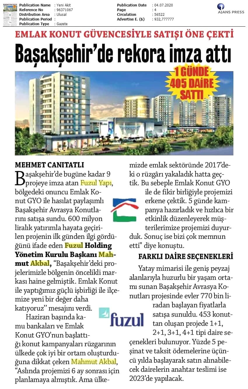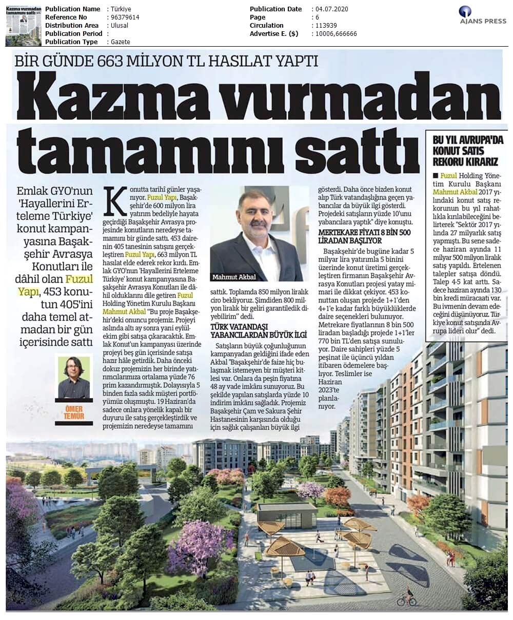 1 Günde 405 Daire Sattı 663 Milyon TL Ciro Yaptı